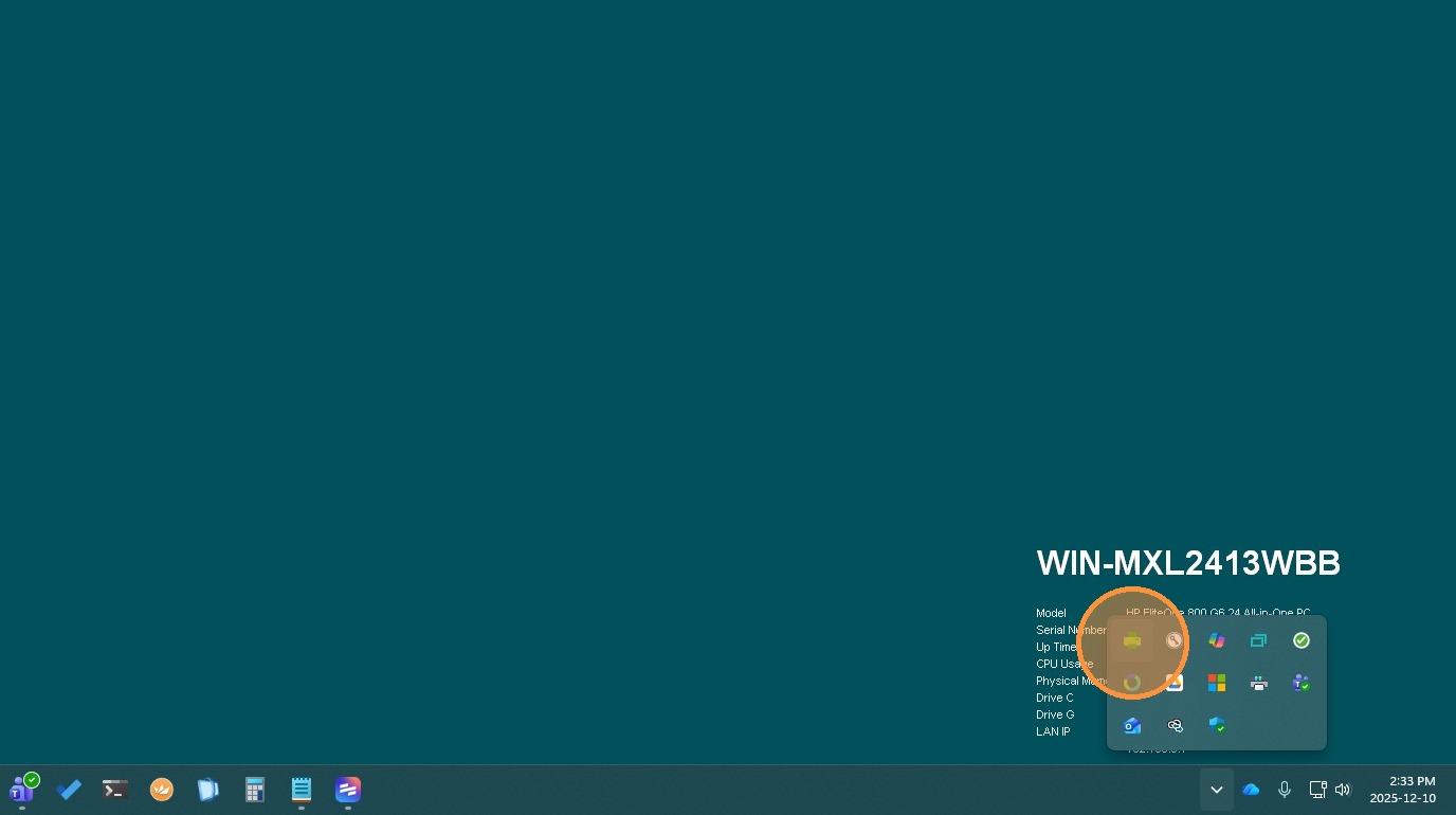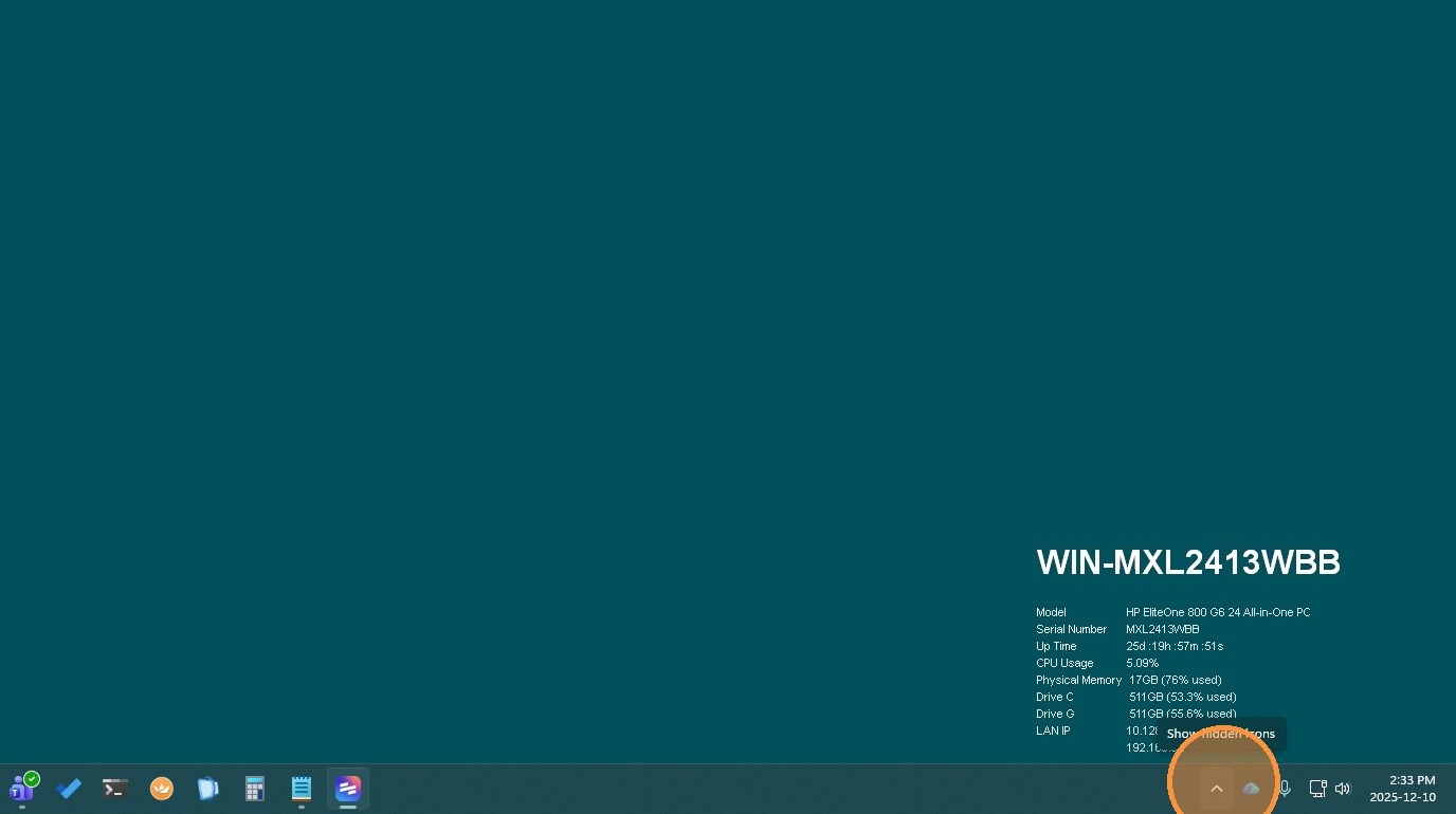 1. Click here to Show all Apps in your "System Tray"
