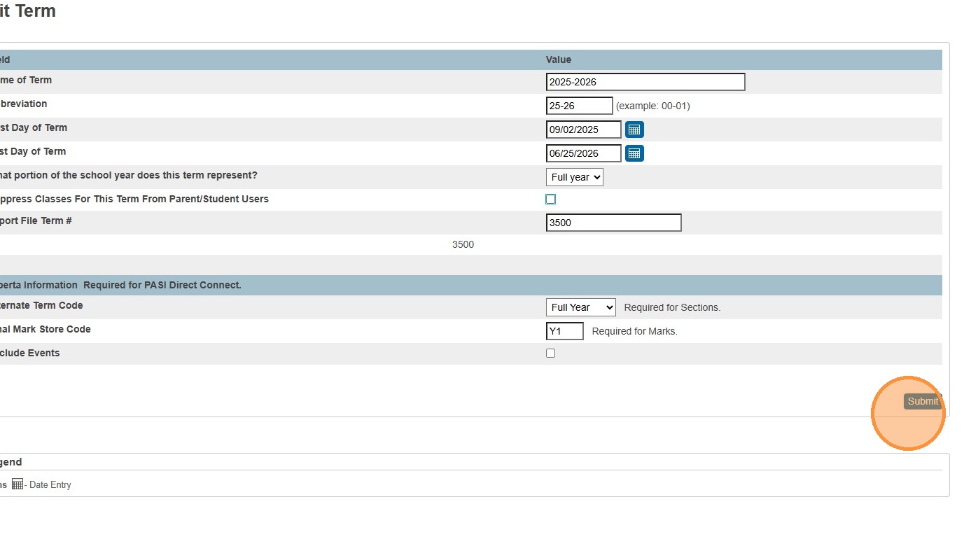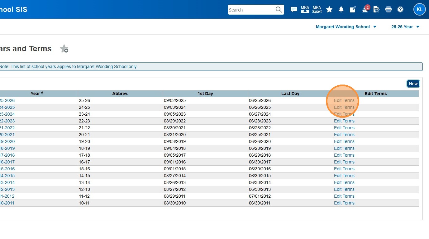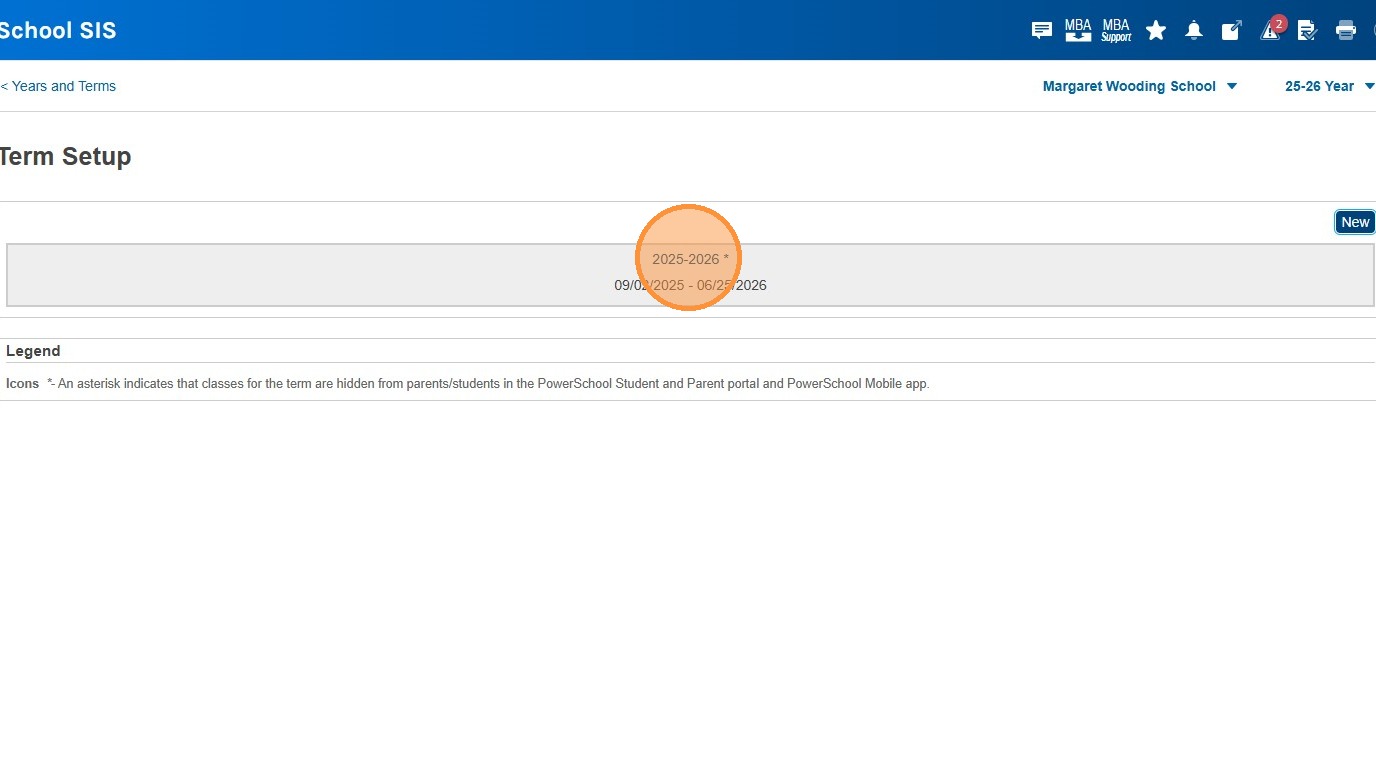6. Click on the term (in this case, "2025-2026". Your school will have either just 2025-2026, or that plus Term 1 and Term 2. You'll have to repeat the next step for each term your school has.