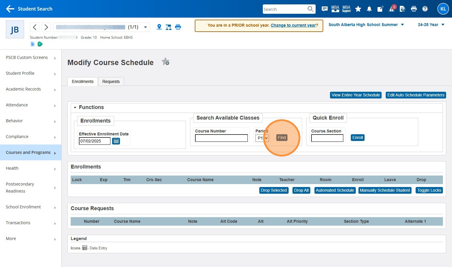 This guide provides a step-by-step process for enrolling students in previous year summer courses within the PowerSchool SIS after the end-of-year rollover. This guide assumes you have already ensured the student has an enrollment in the summer school, and you just need to add the courses.