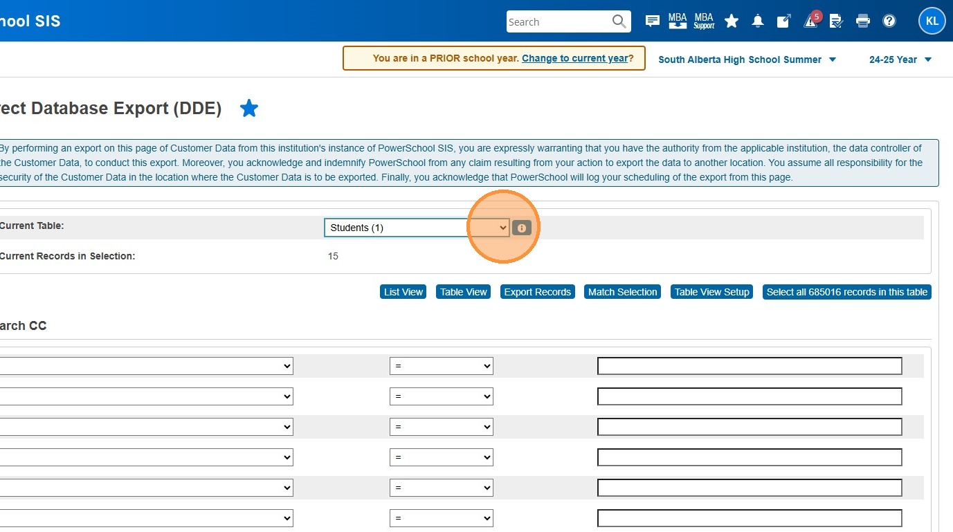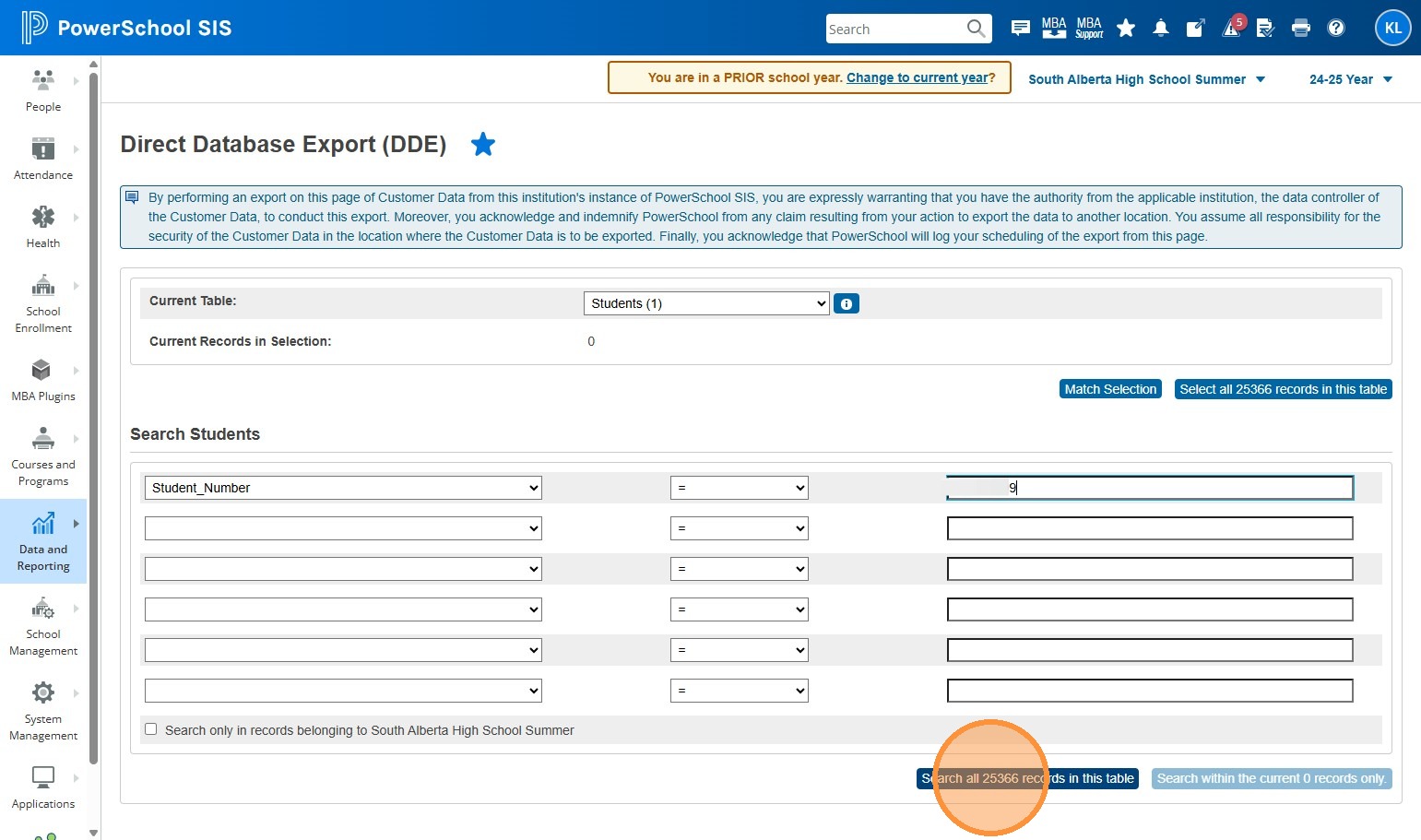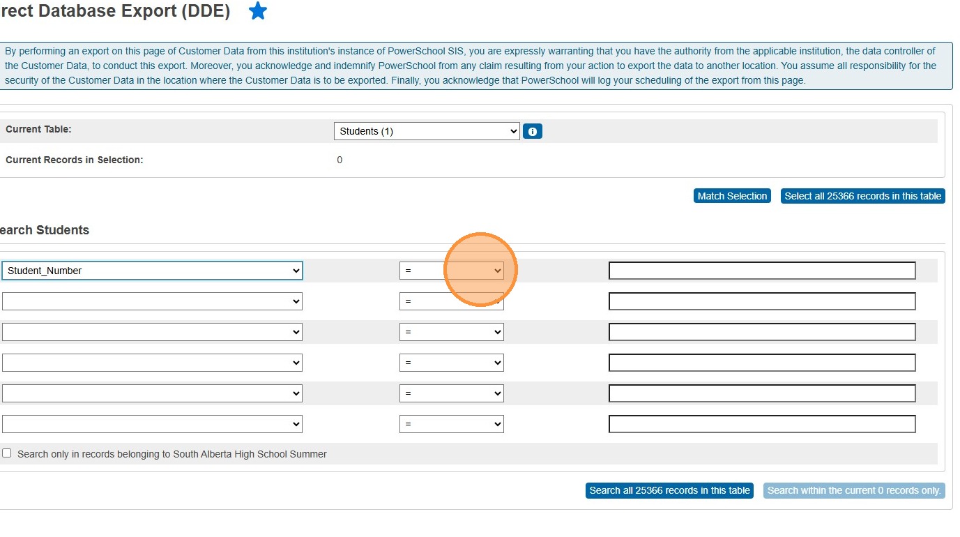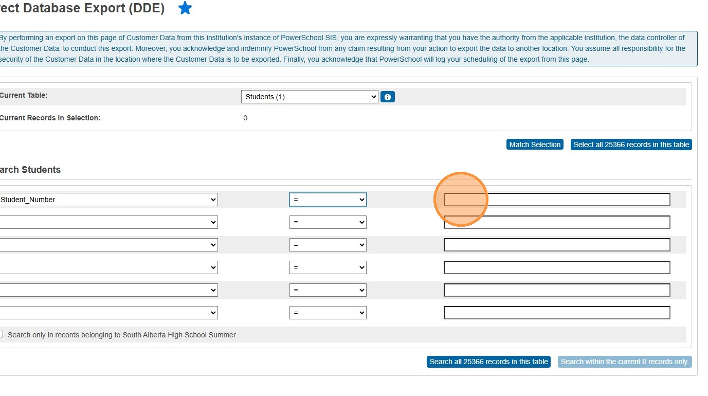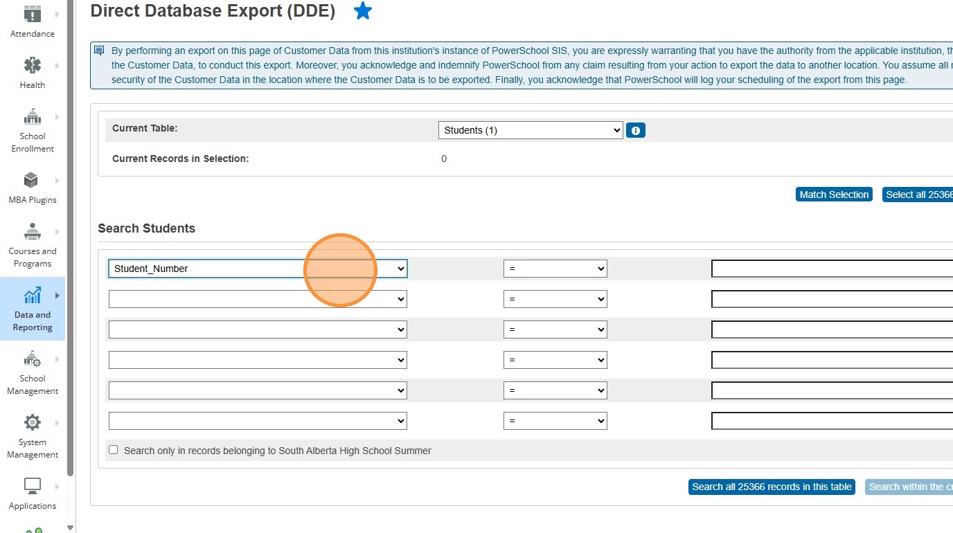 14. Click "Search all #### records in this table"