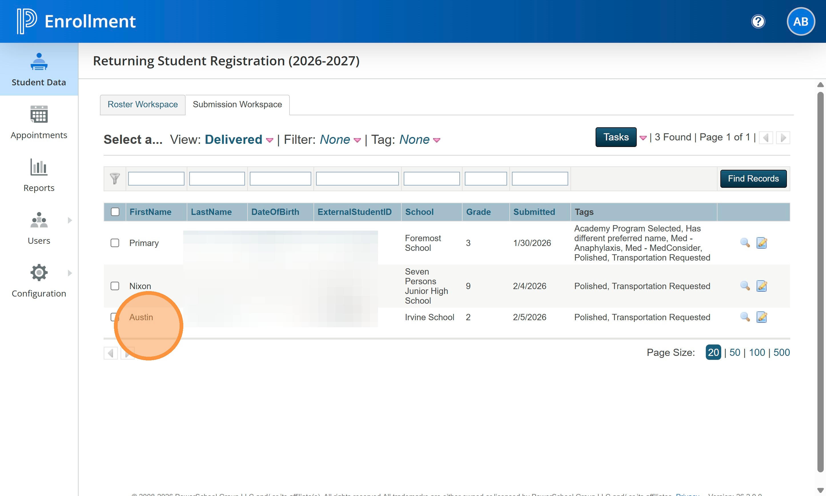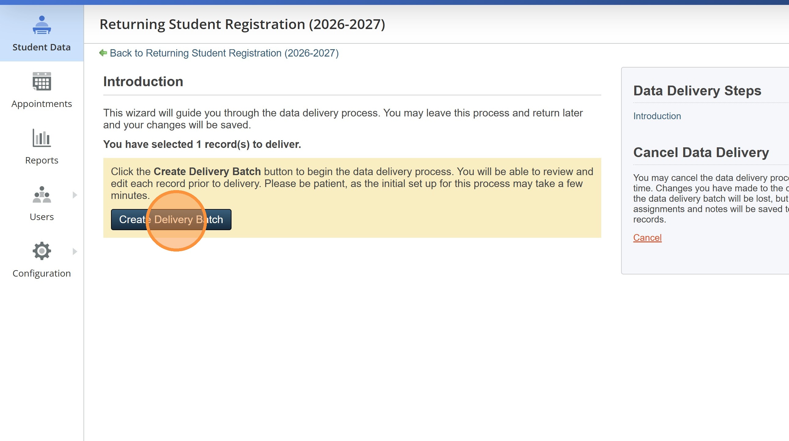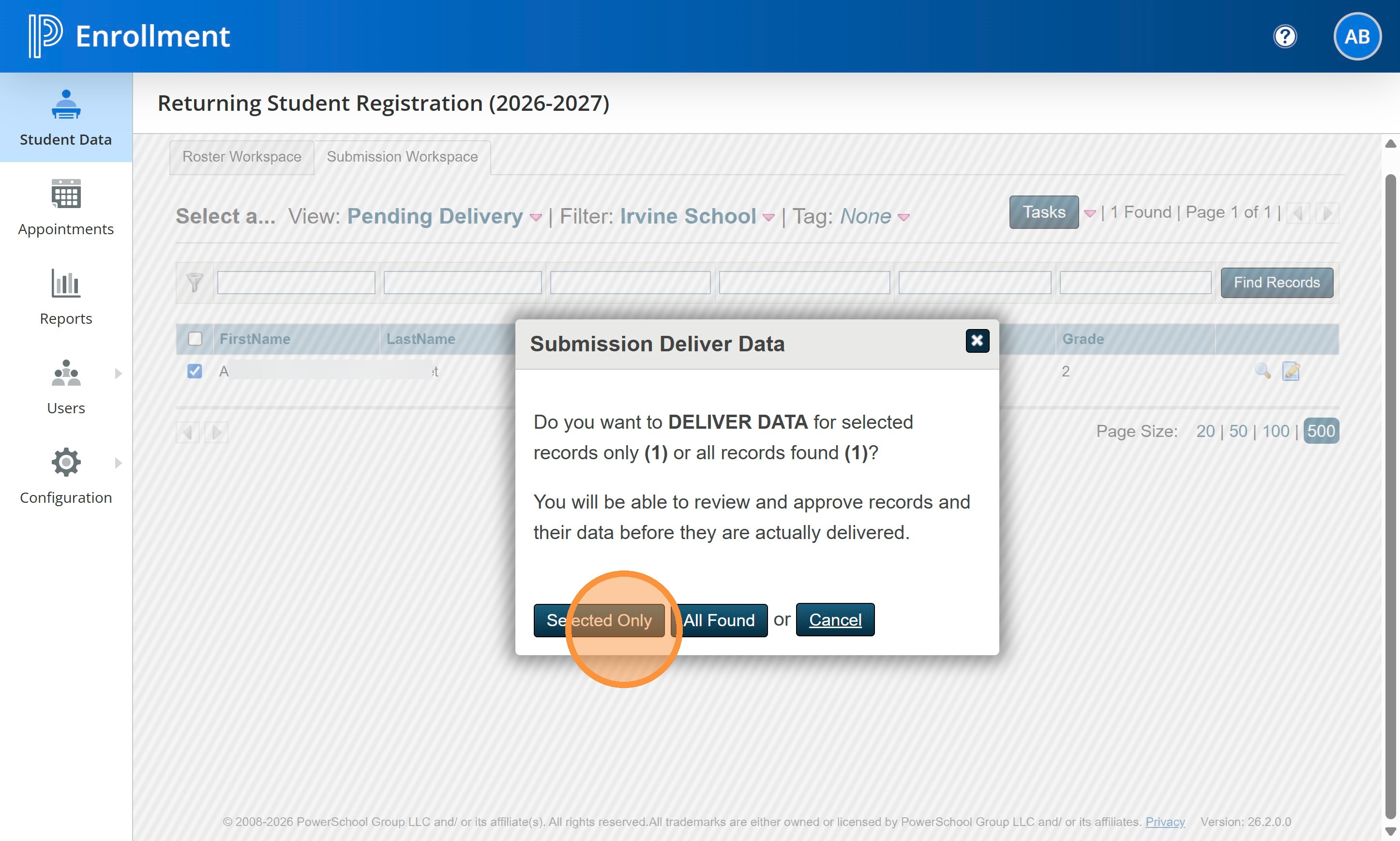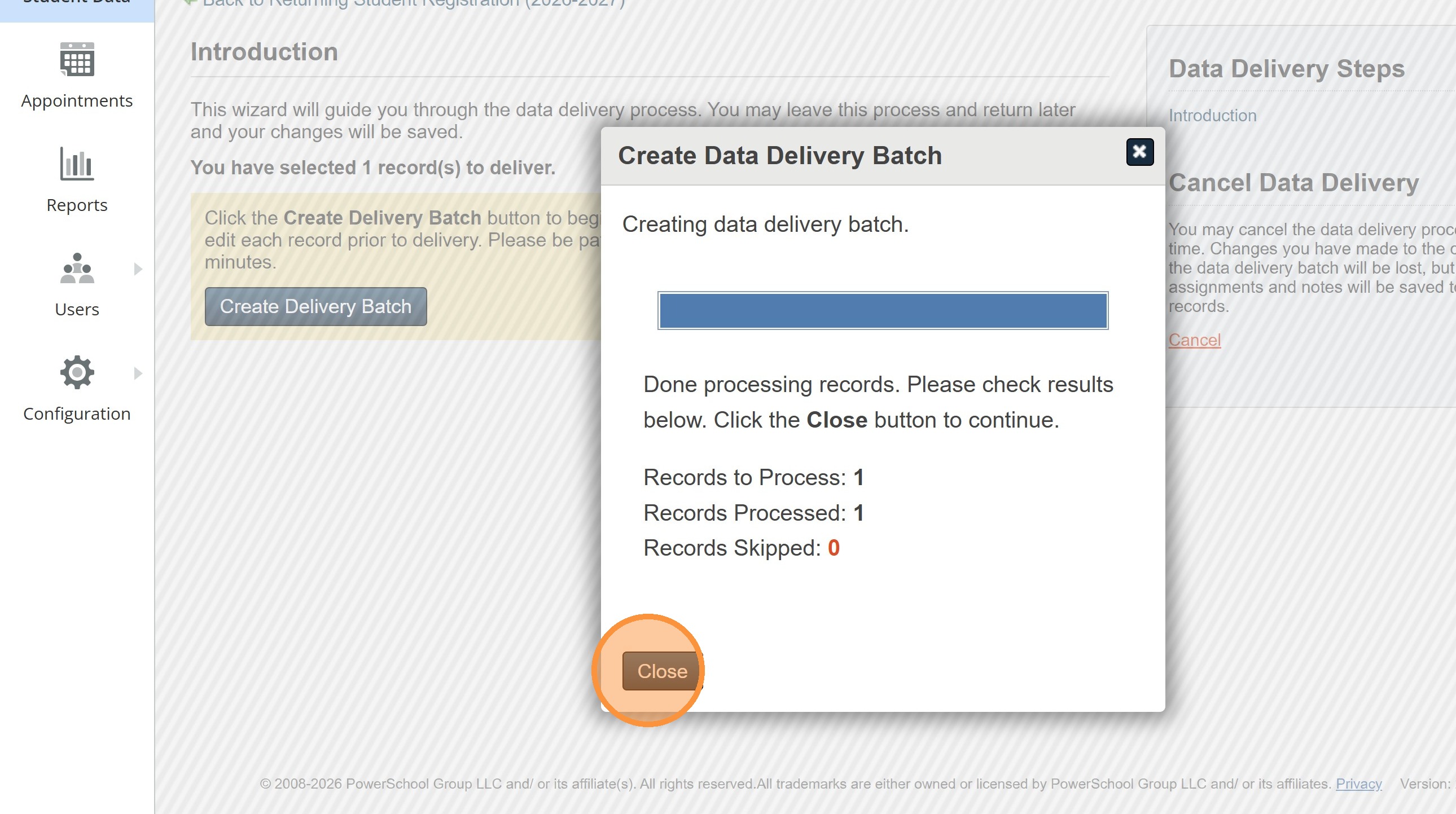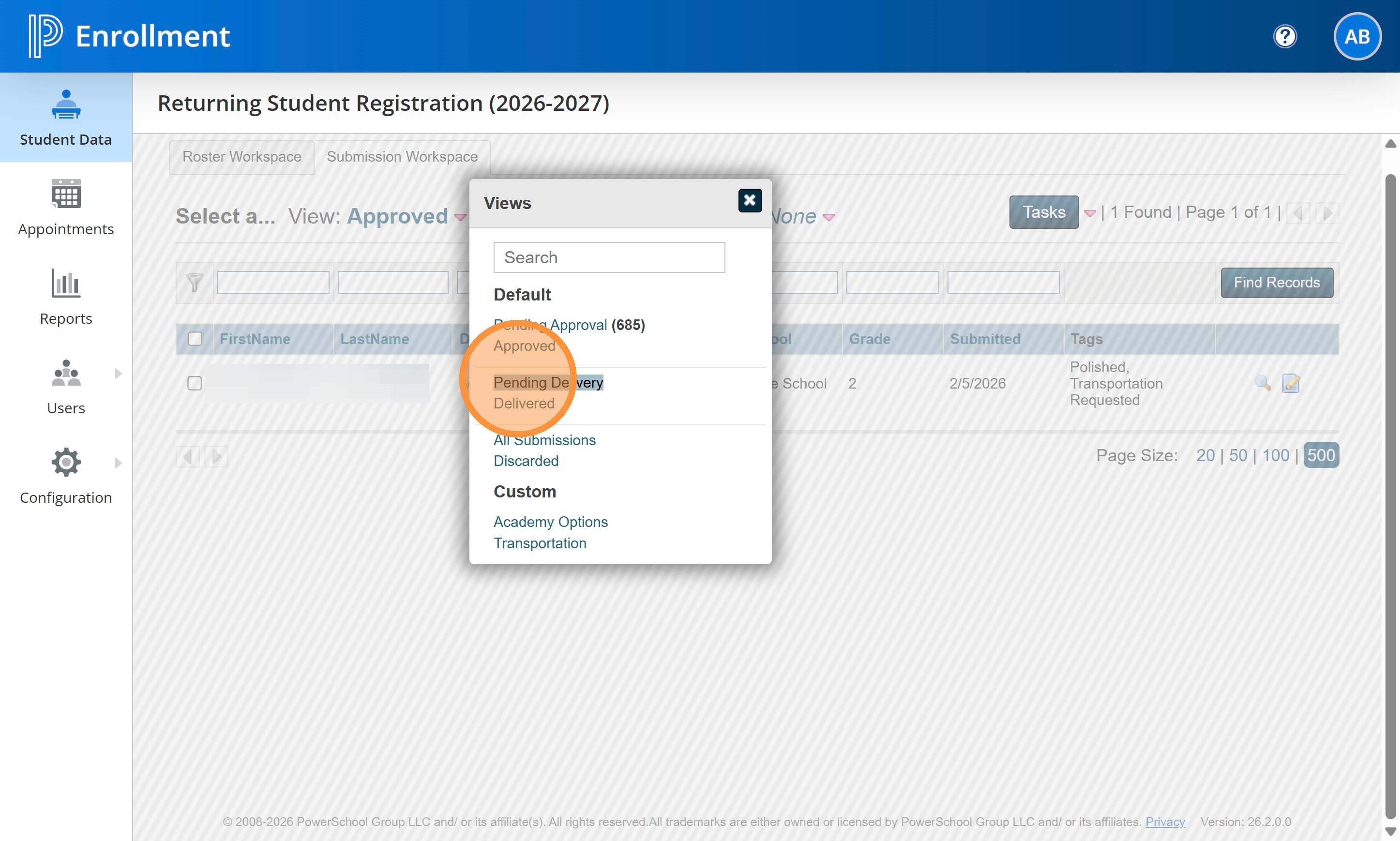 16. To deliver the student information into PowerSchool SIS, you will need to change to the Pending Delivery view.