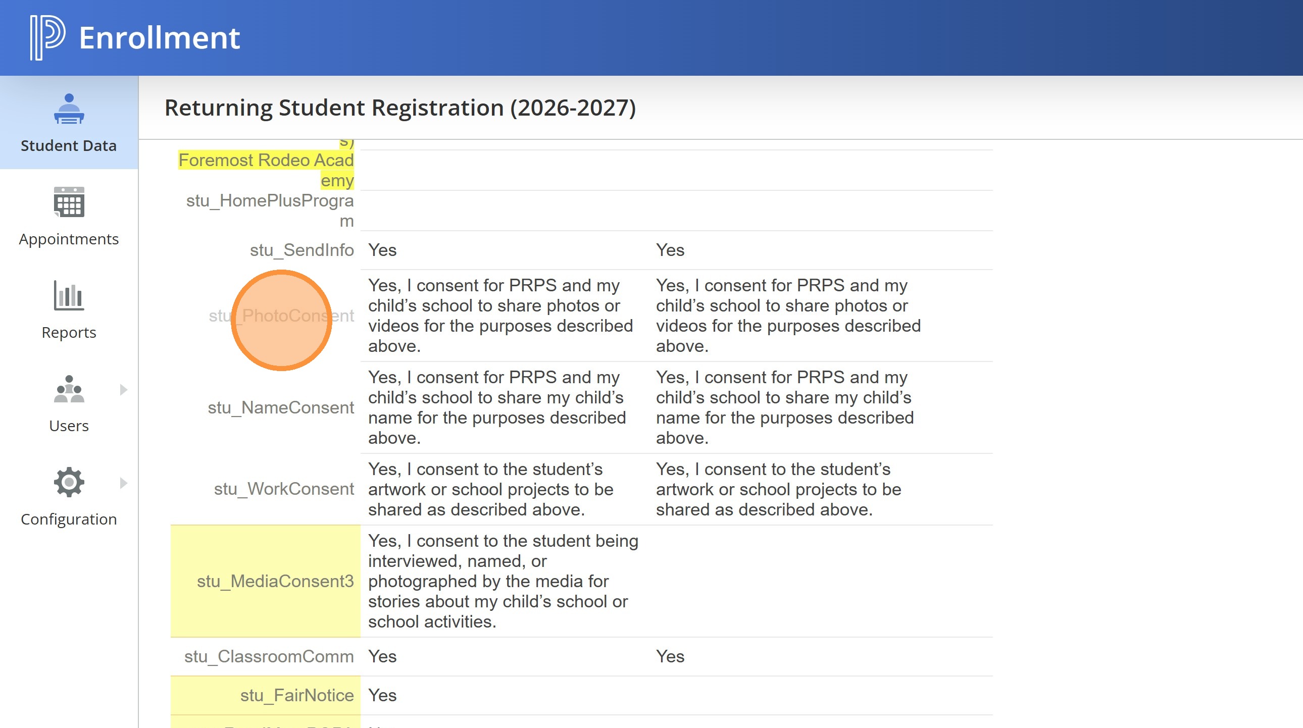 There is a new Fair Notice question which is just a required checkbox and we have changed the Classroom Communications to the same. With the move to the new PowerSchool Hub it will not be possible to turn the classroom messaging component off and on for some people. Feel free to review the changes to the questions in the paper version of the PRPS registration form (pages 2 and 4). https://drive.google.com/file/d/1ywHh9WxqtPaRFIiZKwgEWr_zBxdvDiBu/view?usp=drive_link