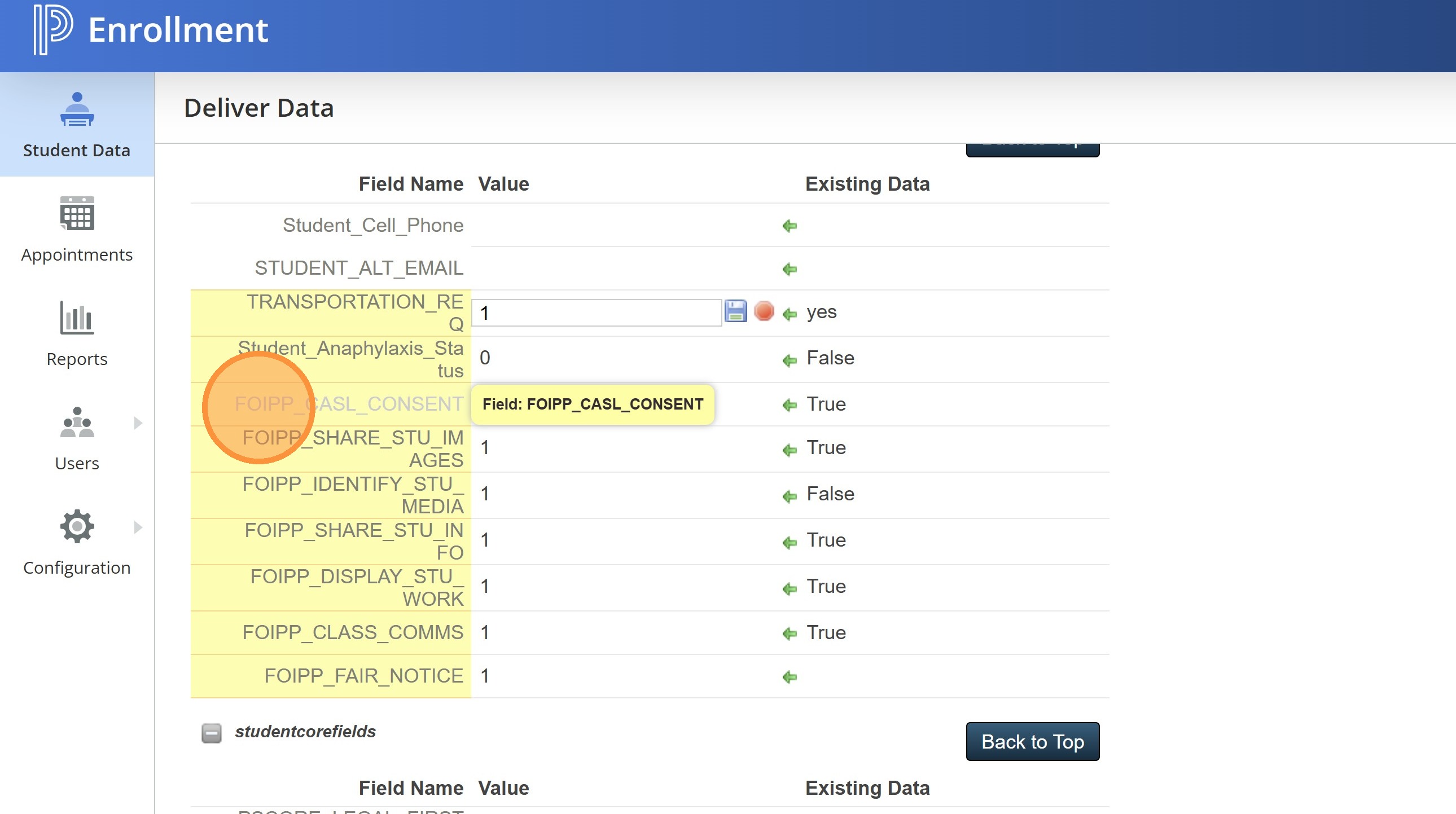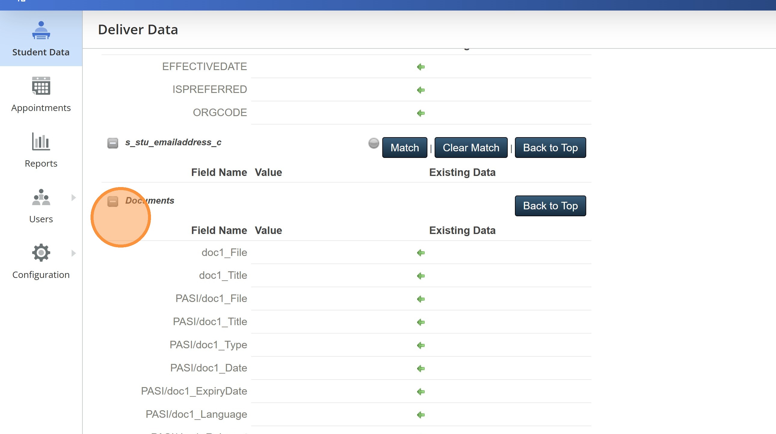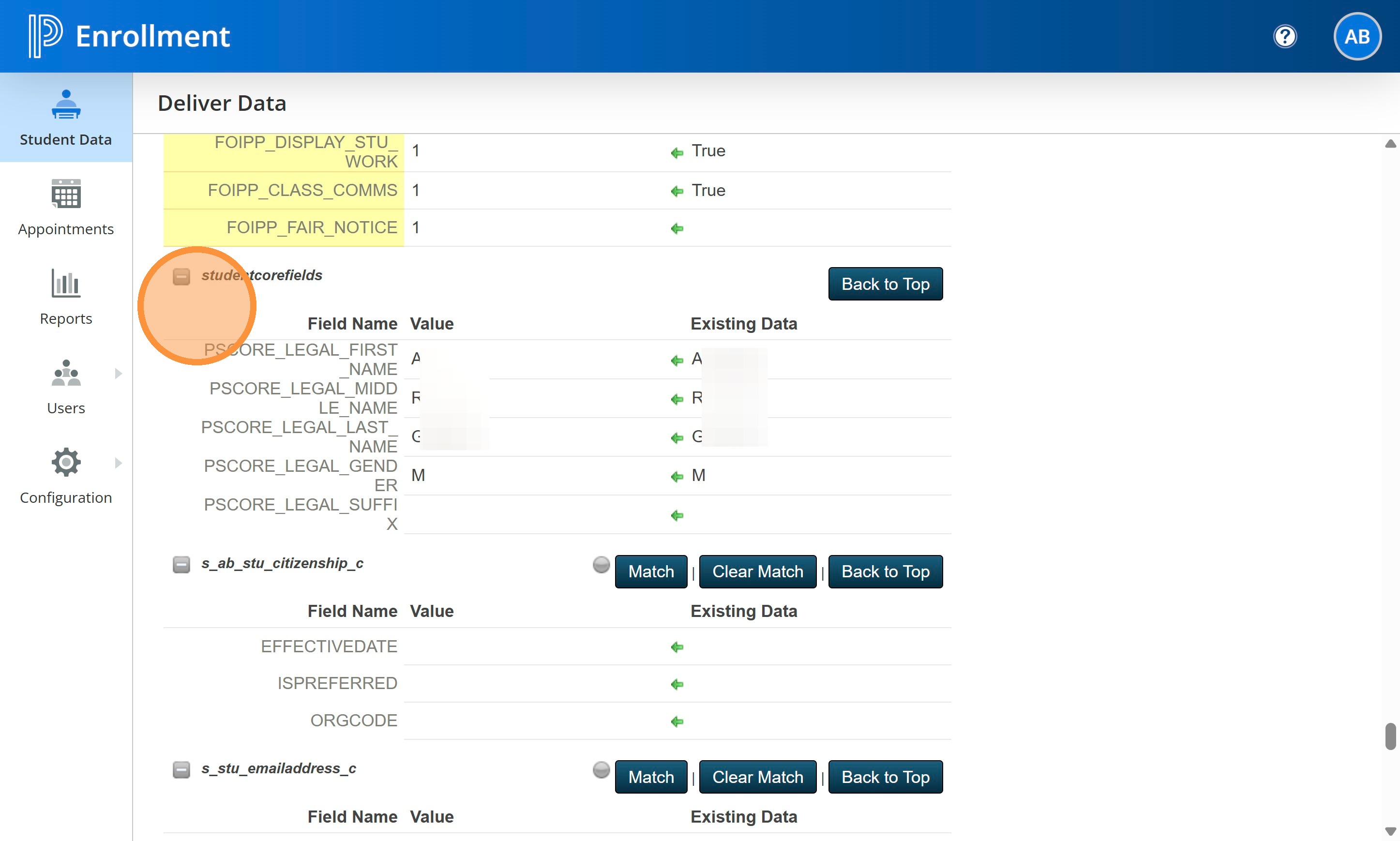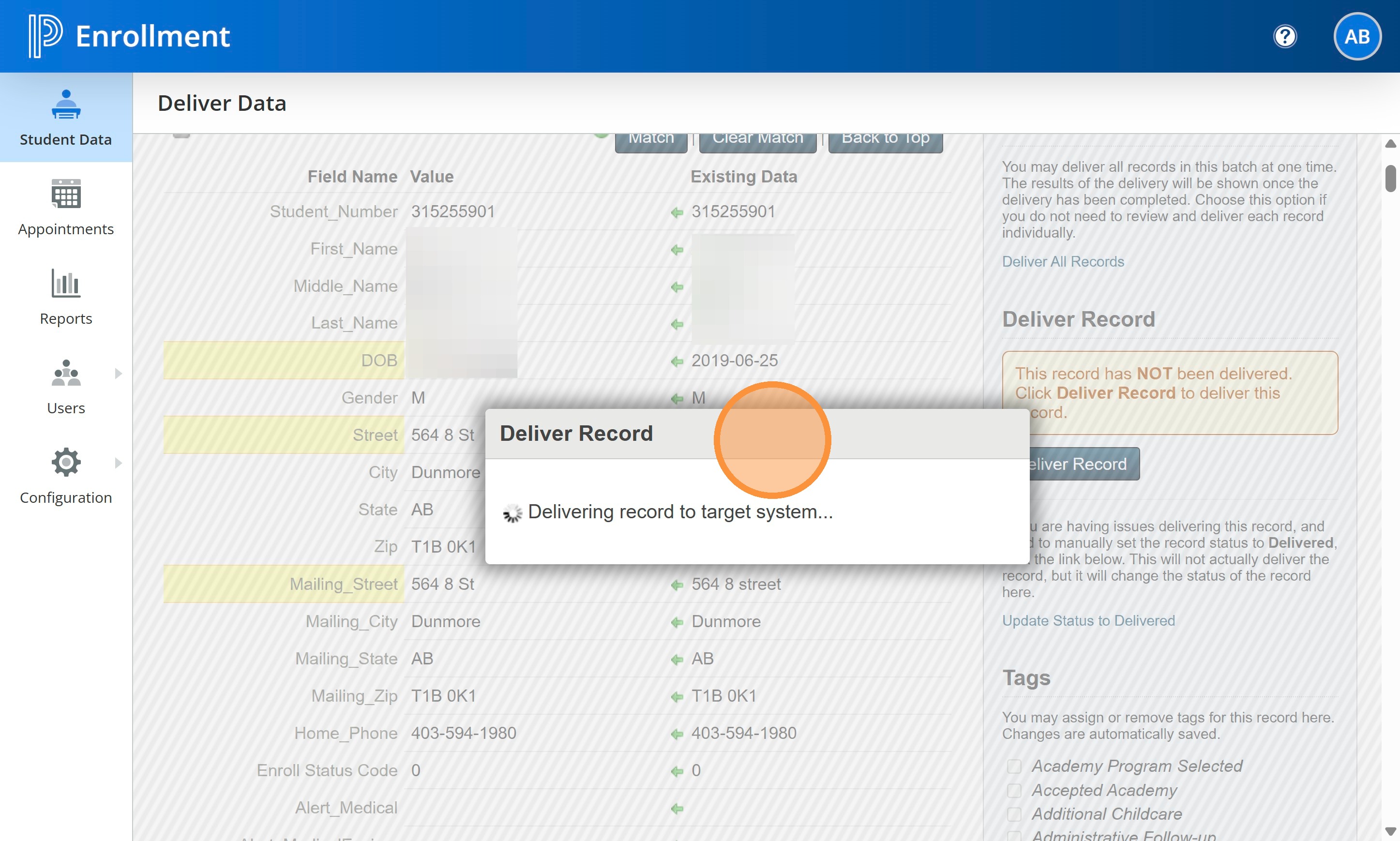 23. As you review the student for Delivery, you will want to pay attention to the lights beside the Match sections. In this case, the student was matched with one in SIS.