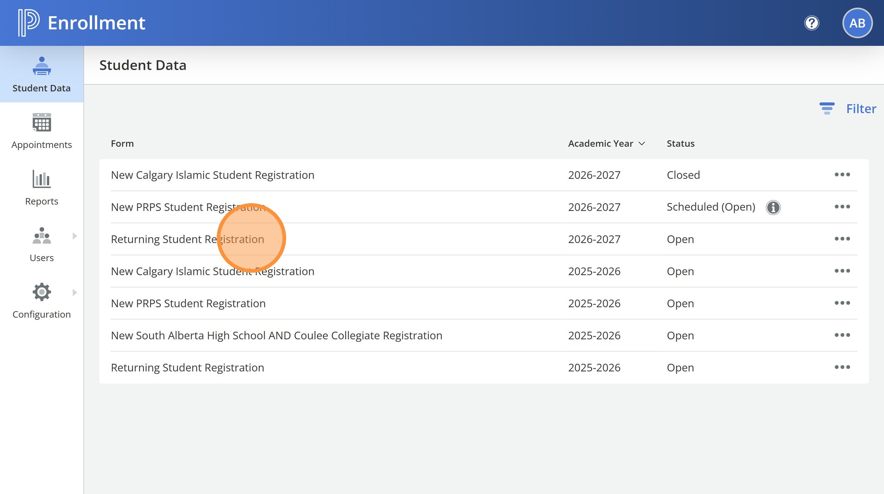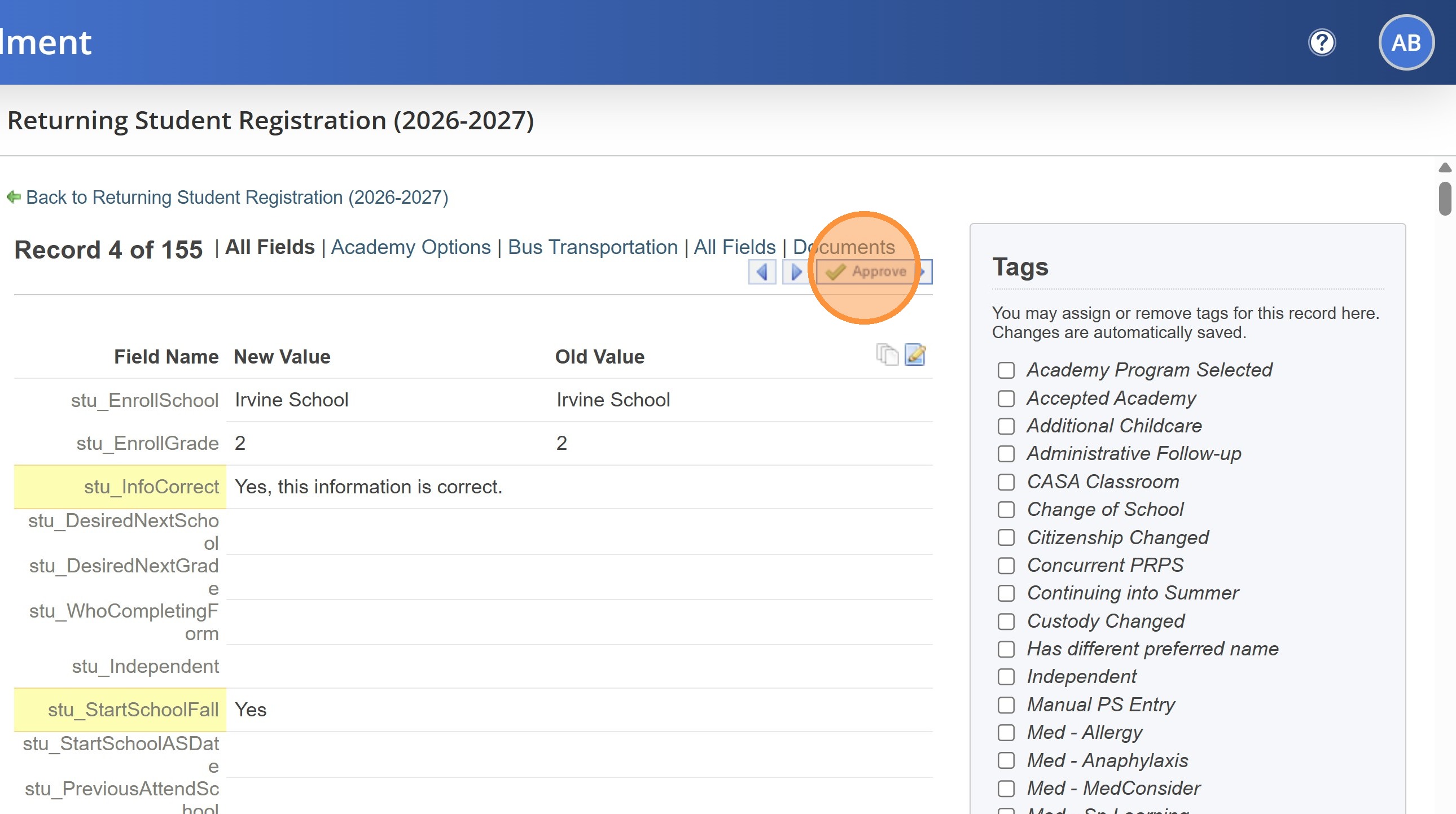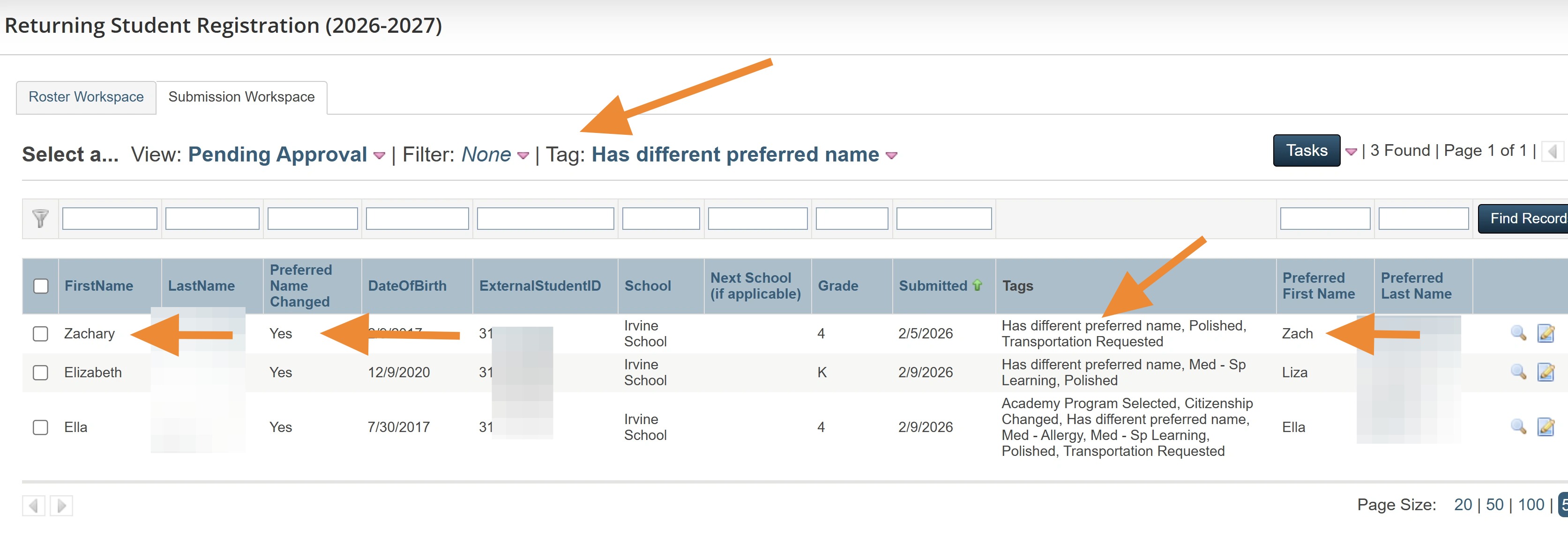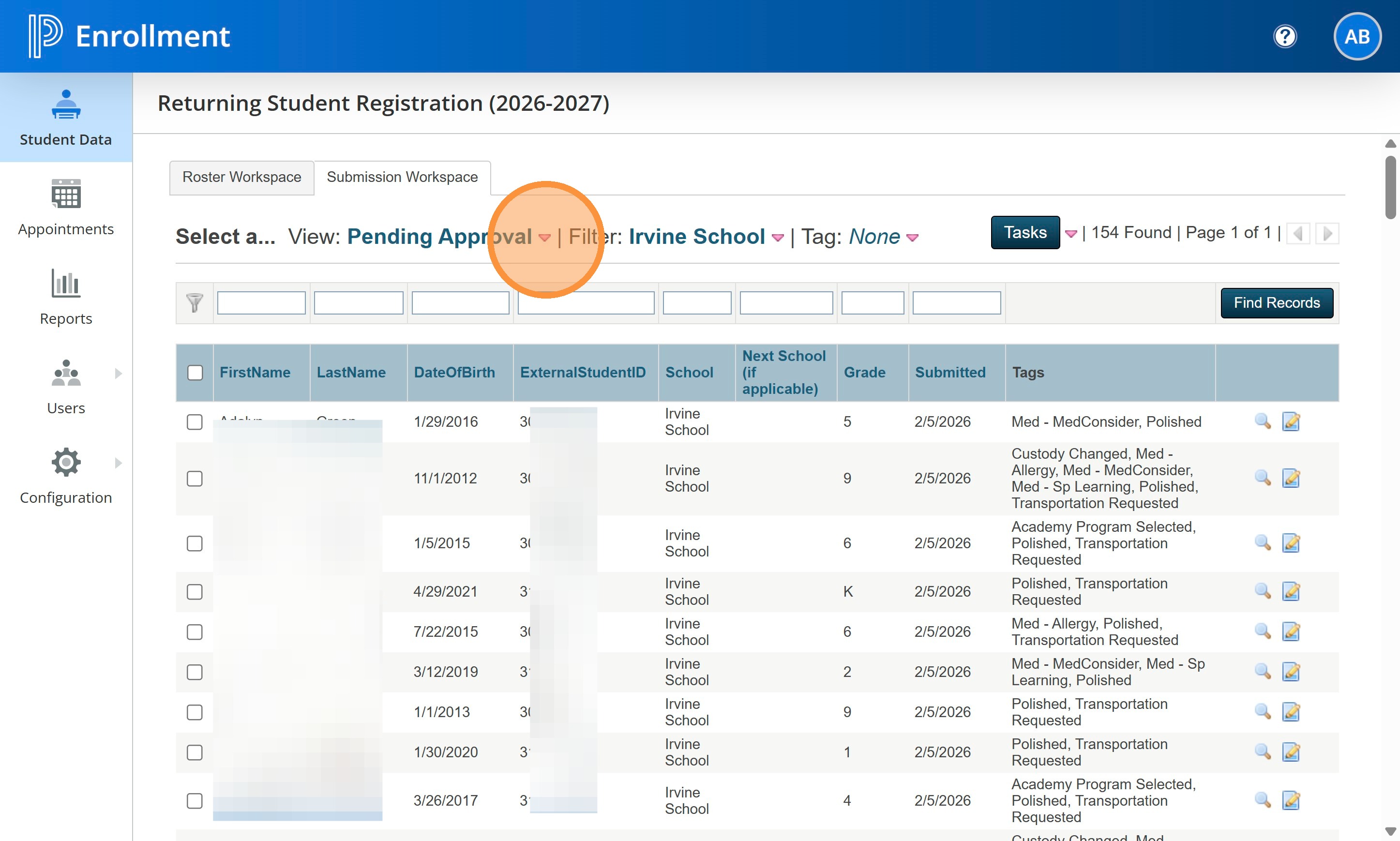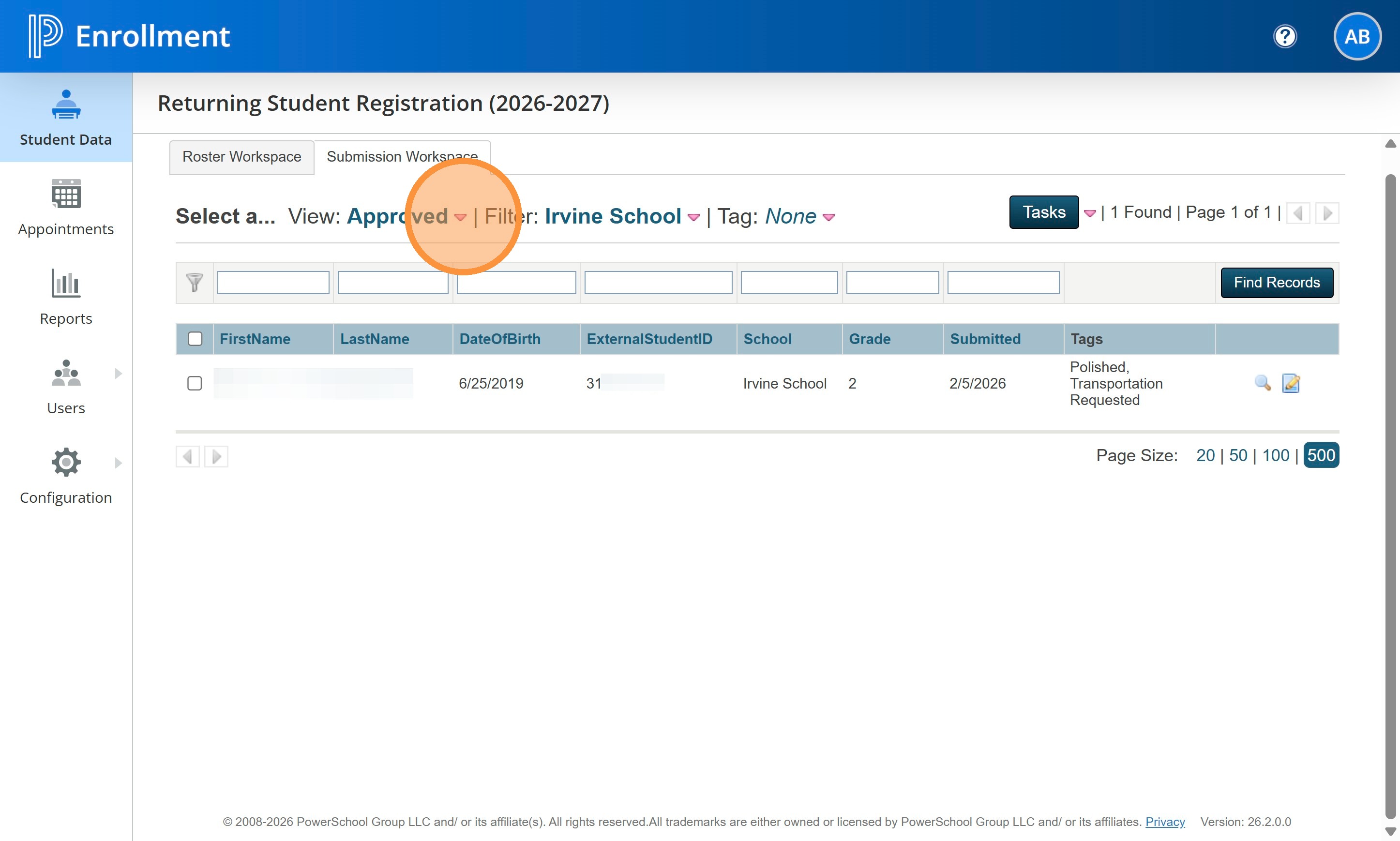14. The student will no longer be in the Pending Approval view. Click the red arrow to view them in the Approved view.
