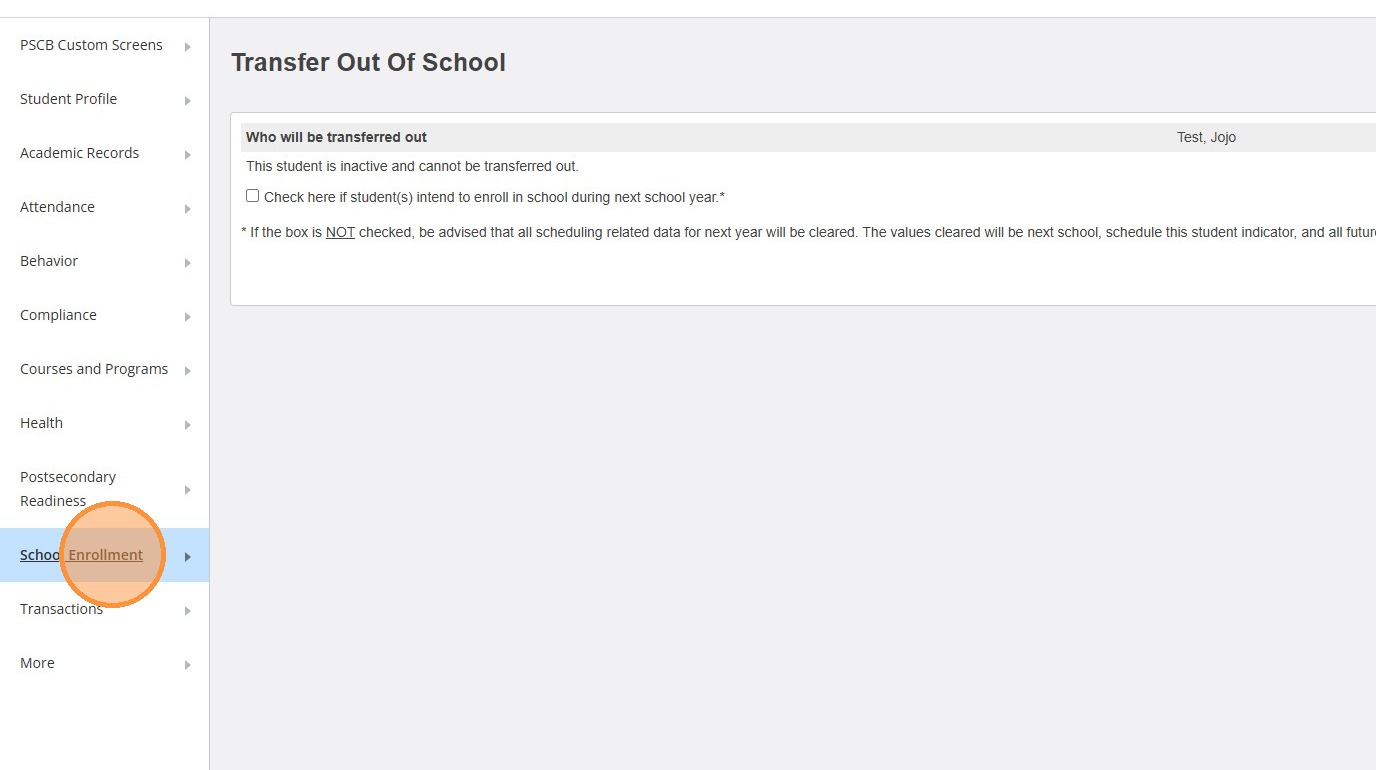 This guide walks you through the process of transferring a student out of a school and then enrolling them into another school within the PRSD system. Follow these steps to ensure accurate student record management.